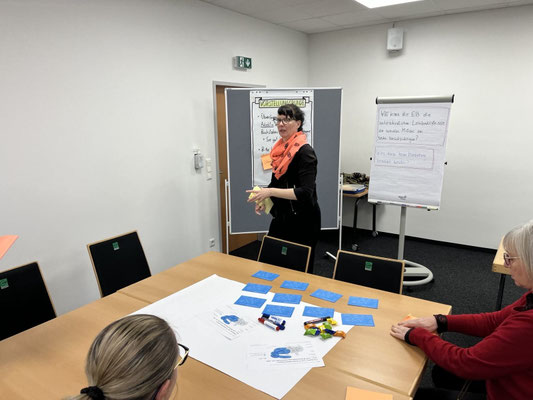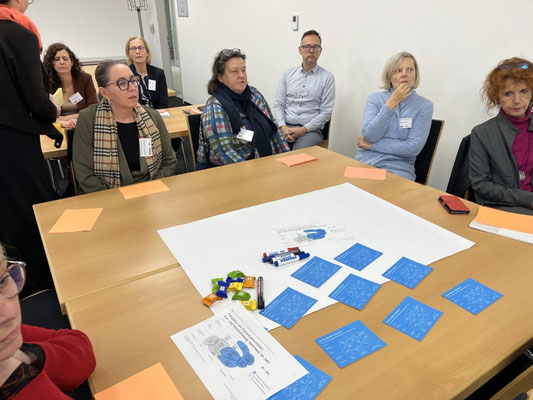 In Anschluss an die Vorträge bot ein „World Café“ den Teilnehmern die Gelegenheit, Ideen und Ansätze zu diskutieren. Gemeisam wurde an der Frage gearbeitet: Wie kann Nachhaltigkeit in der Erwachsenenbildung auf unterschiedlichsten Ebenen vorangetrieben werden?